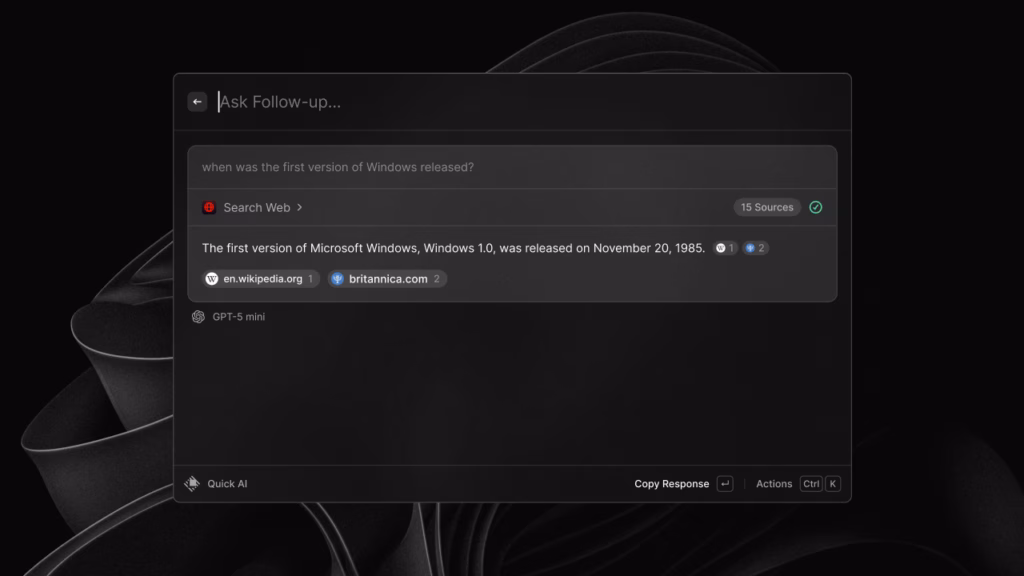 გარდა ამისა, ნეიროქსელური ფუნქცია Quick AI უფასოდ იქნება ხელმისაწვდომი საჯარო ბეტა ტესტირების დროს. ის აგებულია GPT-5 mini ენობრივი მოდელის ბაზაზე და განკუთვნილია კითხვებზე სწრაფი პასუხების გასაცემად.